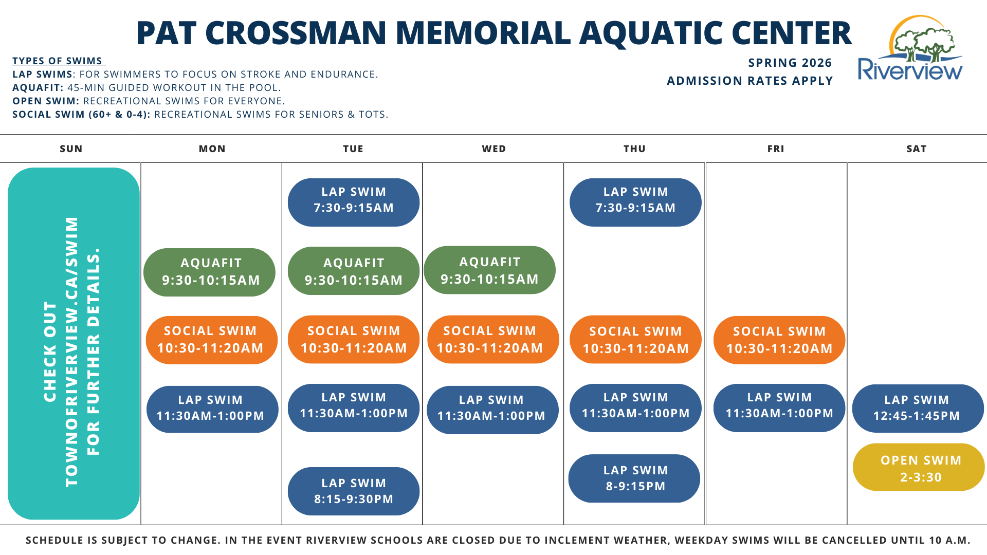 Employment Opportunities: Looking for a rewarding job? Join our amazing Aquatics team. To apply, please send your resume and a list of your Lifesaving certifications to swim@townofriverview.ca.